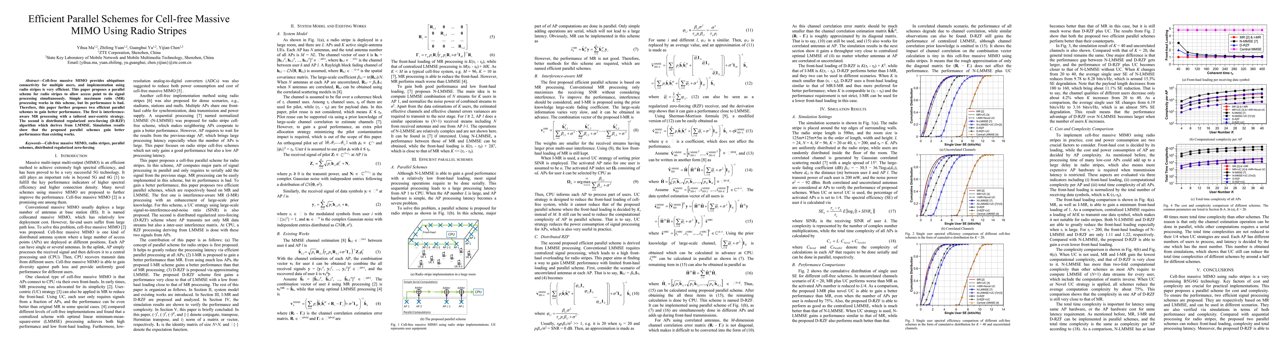 This paper proposes parallel schemes for cell-free massive MIMO using radio stripes, introducing interference-aware maximum ratio and distributed regularized zero-forcing algorithms to enhance performance over simple MR processing. Simulation results demonstrate superior performance of the proposed schemes.