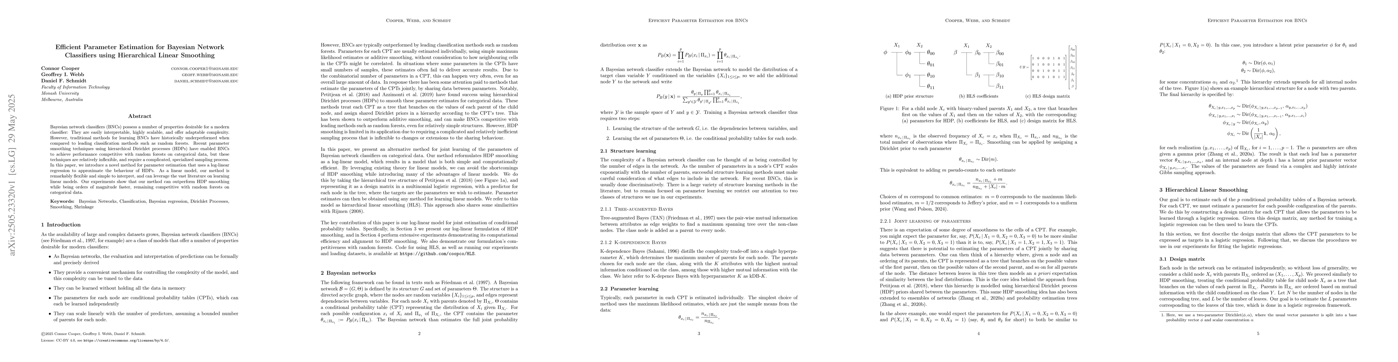 The research introduces a novel method for parameter estimation in Bayesian Network Classifiers (BNCs) using hierarchical linear smoothing, approximating the behavior of hierarchical Dirichlet processes (HDPs) with a log-linear regression model.