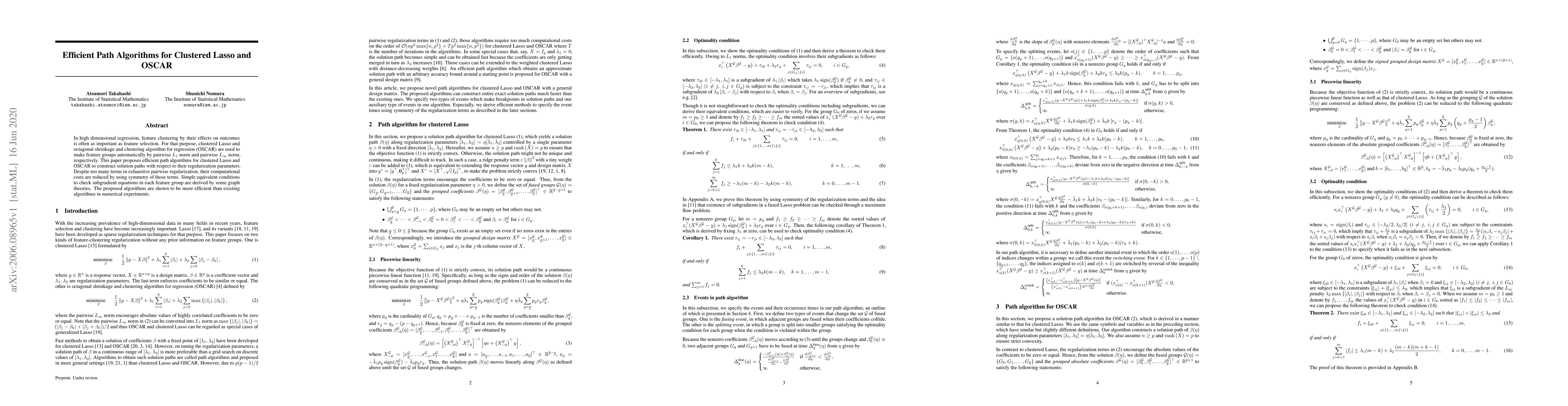In high dimensional regression, feature clustering by their effects on outcomes is often as important as feature selection. For that purpose, clustered Lasso and octagonal shrinkage and clustering algorithm for regression (OSCAR) are used to make feature groups automatically by pairwise $L_1$ norm and pairwise $L_\infty$ norm, respectively. This paper proposes efficient path algorithms for clustered Lasso and OSCAR to construct solution paths with respect to their regularization parameters. Despite too many terms in exhaustive pairwise regularization, their computational costs are reduced by using symmetry of those terms. Simple equivalent conditions to check subgradient equations in each feature group are derived by some graph theories. The proposed algorithms are shown to be more efficient than existing algorithms in numerical experiments.