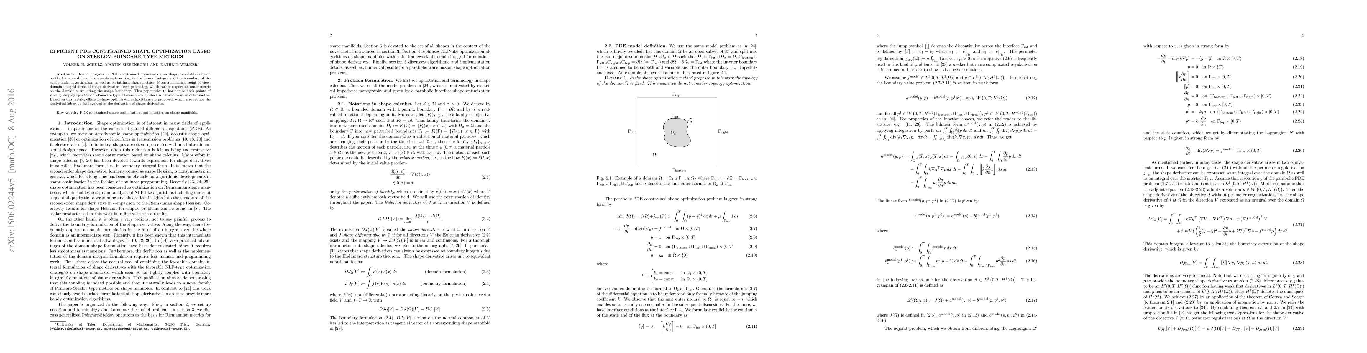 Recent progress in PDE constrained optimization on shape manifolds is based on the Hadamard form of shape derivatives, i.e., in the form of integrals at the boundary of the shape under investigation, as well as on intrinsic shape metrics. From a numerical point of view, domain integral forms of shape derivatives seem promising, which rather require an outer metric on the domain surrounding the shape boundary. This paper tries to harmonize both points of view by employing a Steklov-Poincar\'e type intrinsic metric, which is derived from an outer metric. Based on this metric, efficient shape optimization algorithms are proposed, which also reduce the analytical labor, so far involved in the derivation of shape derivatives.