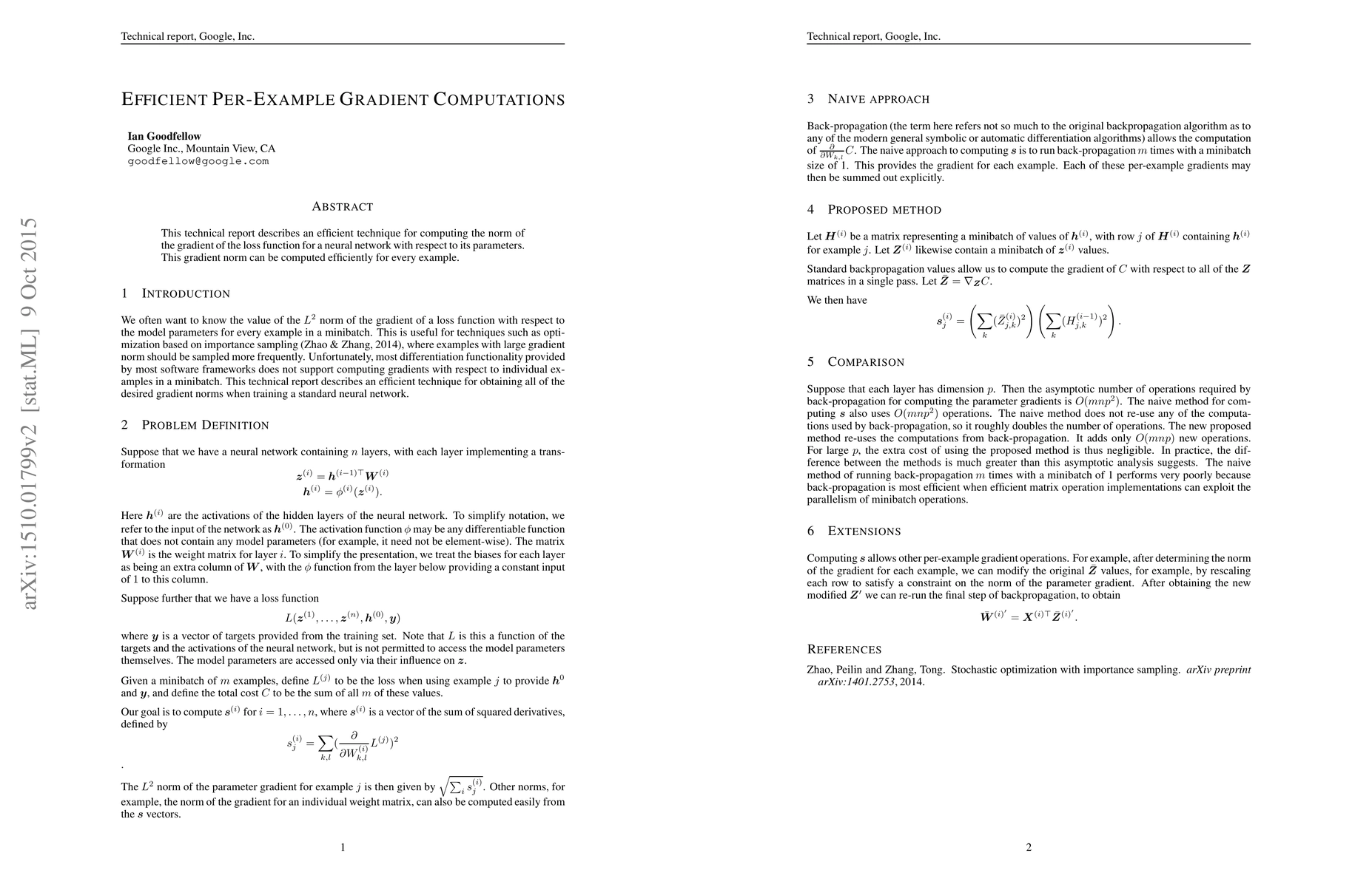 This technical report describes an efficient technique for computing the norm of the gradient of the loss function for a neural network with respect to its parameters. This gradient norm can be computed efficiently for every example.