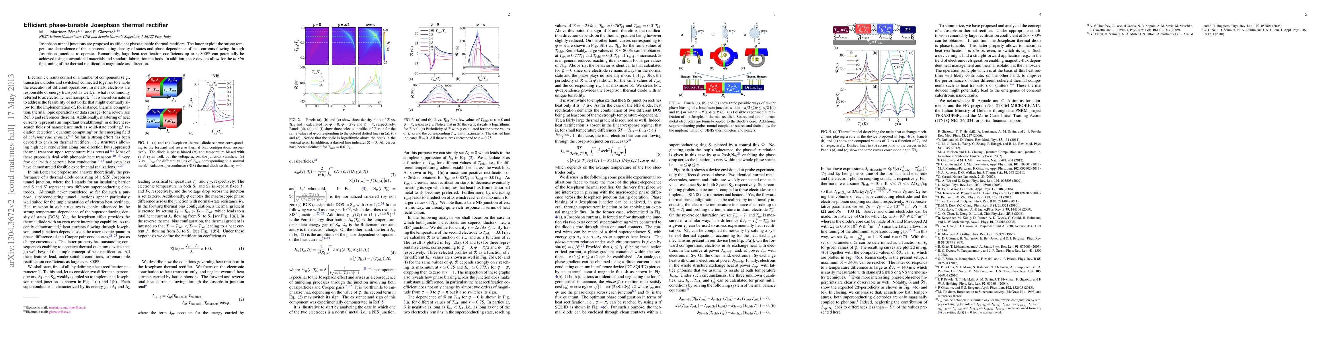 This paper proposes Josephson tunnel junctions as efficient, phase-tunable thermal rectifiers, achieving large heat rectification coefficients up to 800% using conventional materials. The devices allow for in-situ fine tuning of thermal rectification magnitude and direction.