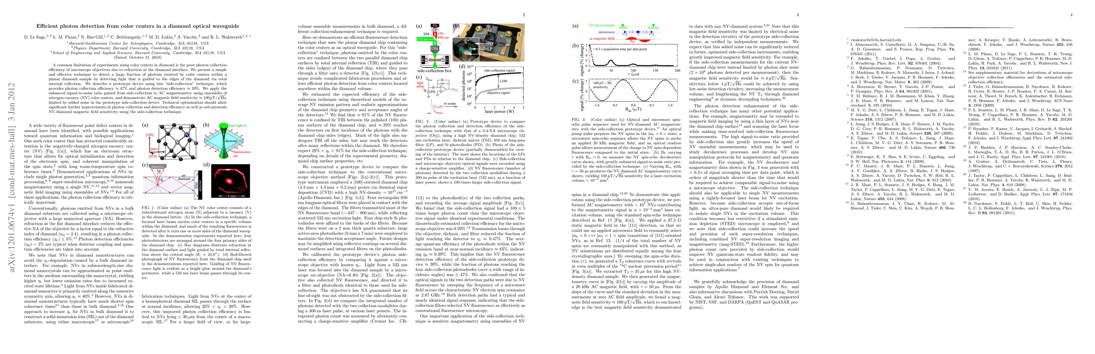 This paper presents a method to enhance photon detection efficiency from color centers in diamond optical waveguides by utilizing total internal reflection to guide light to the edges for collection, achieving 47% photon collection and 39% detection efficiency. The technique improves AC magnetometry sensitivity to 100 pT/\sqrt{Hz} using NV color centers.