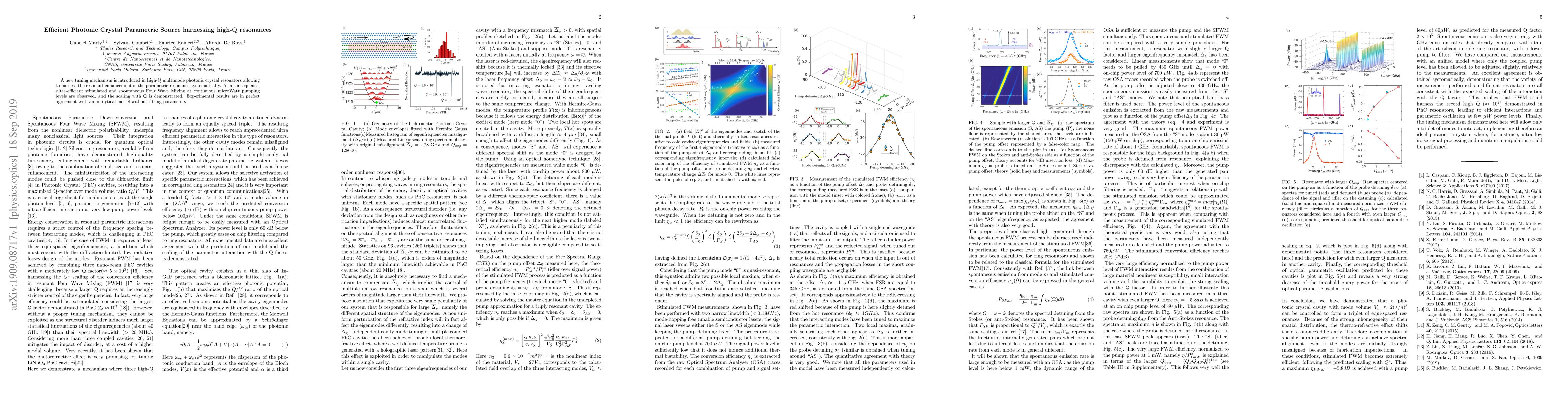 This paper introduces a novel tuning mechanism for high-Q photonic crystal resonators that significantly enhances parametric resonance, achieving ultra-efficient stimulated and spontaneous Four Wave Mixing at microWatt pumping levels. Experimental results align perfectly with an analytical model, demonstrating the scaling with Q.