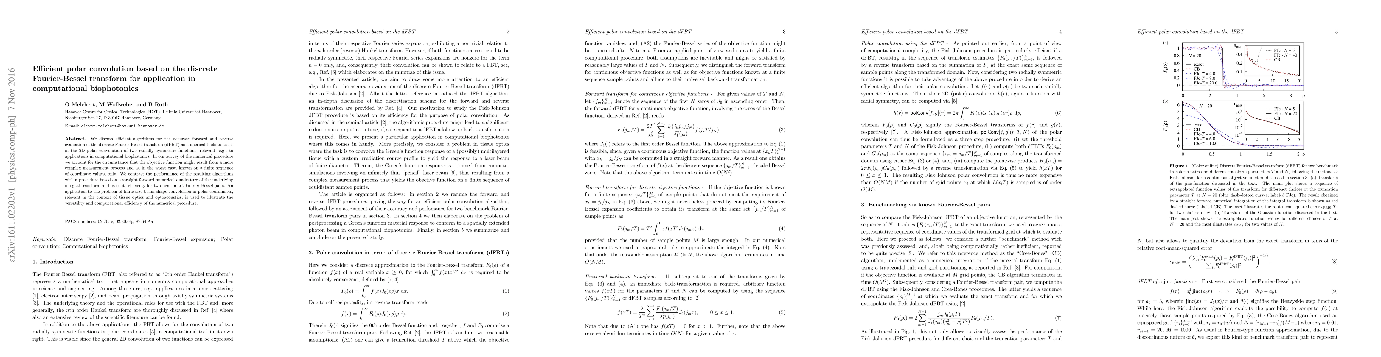 This paper introduces an efficient algorithm for polar convolution based on the discrete Fourier-Bessel transform, improving computational efficiency in biophotonics applications.