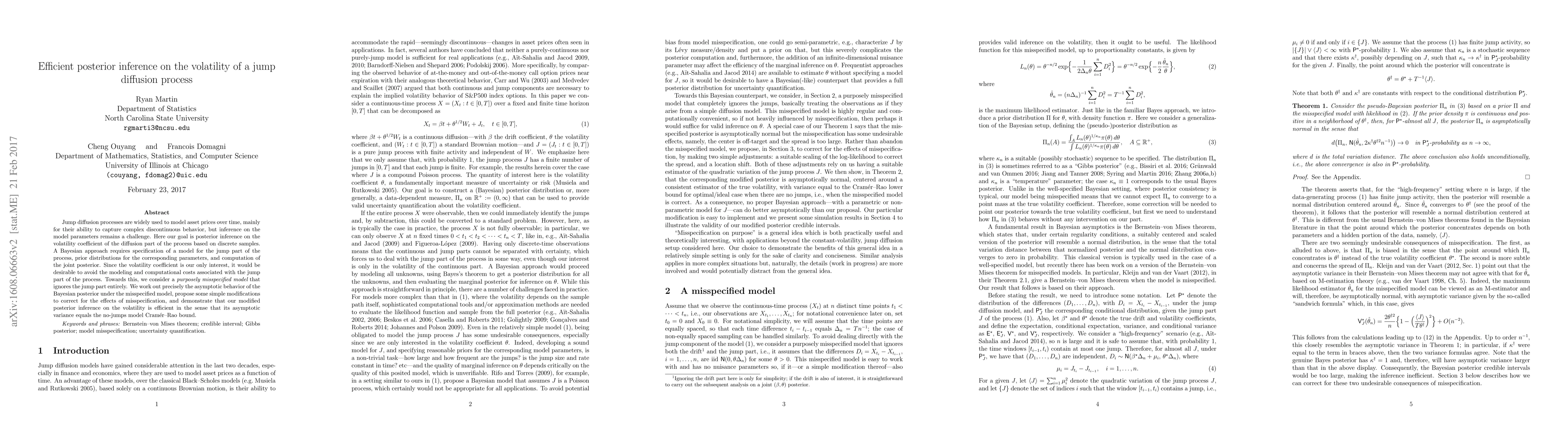 This paper proposes efficient posterior inference for the volatility of a jump diffusion process by using a purposely misspecified model that ignores the jump part, demonstrating that the modified posterior achieves the Cramér-Rao bound for the no-jumps model. The approach simplifies computation while maintaining inference accuracy.