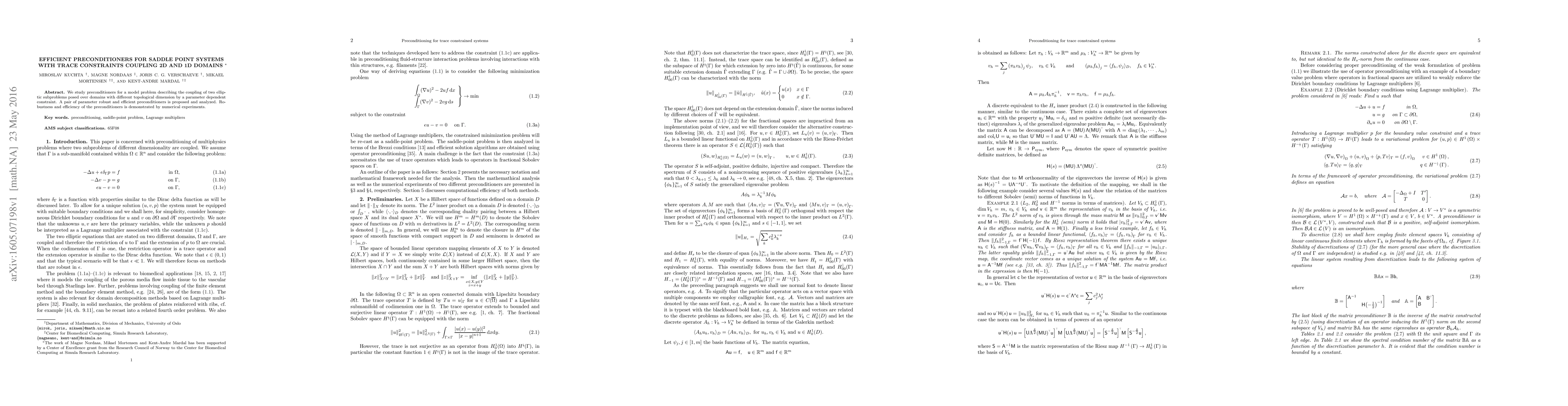 We study preconditioners for a model problem describing the coupling of two elliptic subproblems posed over domains with different topological dimension by a parameter dependent constraint. A pair of parameter robust and efficient preconditioners is proposed and analyzed. Robustness and efficiency of the preconditioners is demonstrated by numerical experiments.