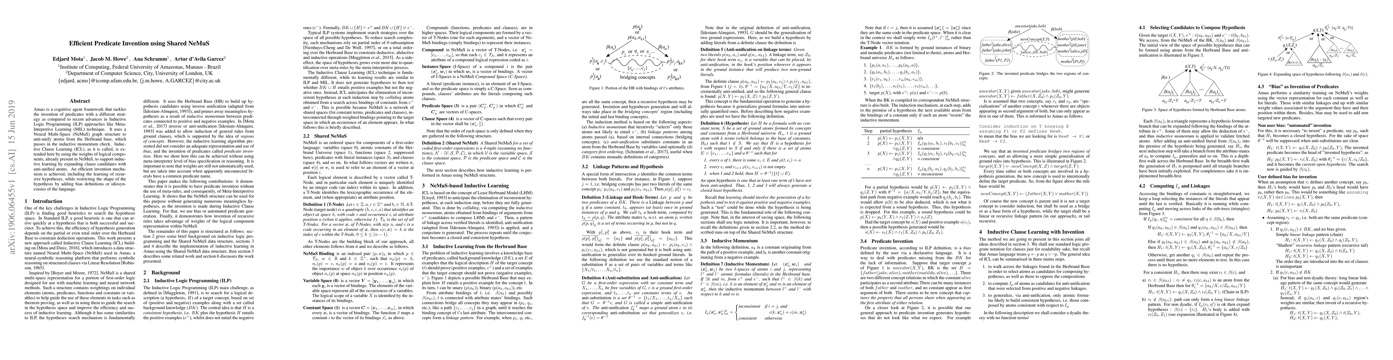 Amao is a cognitive agent framework that tackles the invention of predicates with a different strategy as compared to recent advances in Inductive Logic Programming (ILP) approaches like Meta-Intepretive Learning (MIL) technique. It uses a Neural Multi-Space (NeMuS) graph structure to anti-unify atoms from the Herbrand base, which passes in the inductive momentum check. Inductive Clause Learning (ICL), as it is called, is extended here by using the weights of logical components, already present in NeMuS, to support inductive learning by expanding clause candidates with anti-unified atoms. An efficient invention mechanism is achieved, including the learning of recursive hypotheses, while restricting the shape of the hypothesis by adding bias definitions or idiosyncrasies of the language.