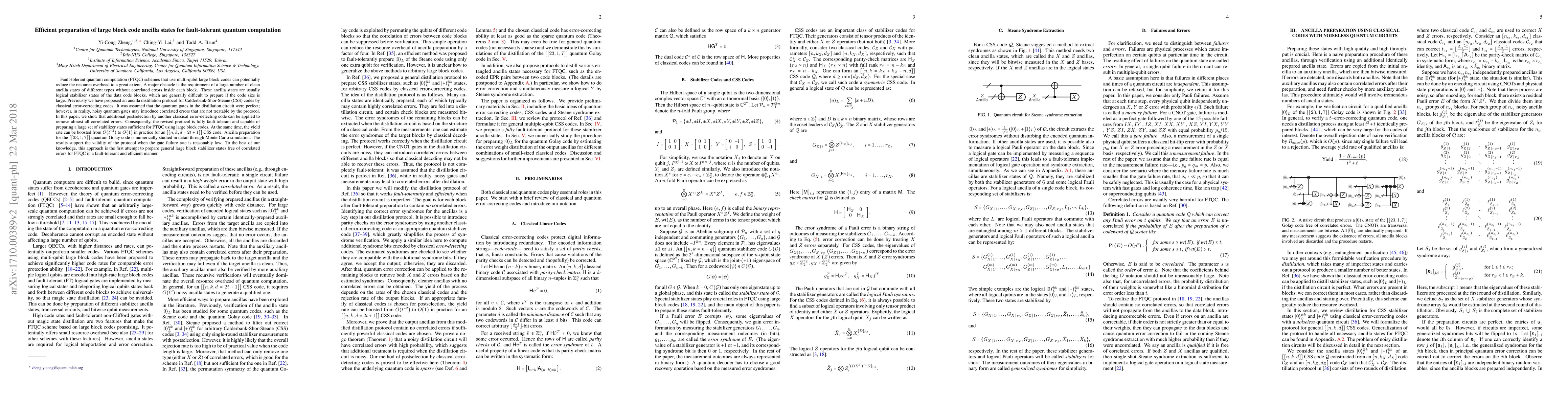 This paper proposes a revised protocol for preparing large block code ancilla states, overcoming correlated errors introduced by imperfect quantum gates, through the use of postselection via classical error-detecting codes. The method is shown to be fully fault-tolerant and enhances the yield rate, supporting practical implementation for fault-tolerant quantum computation.