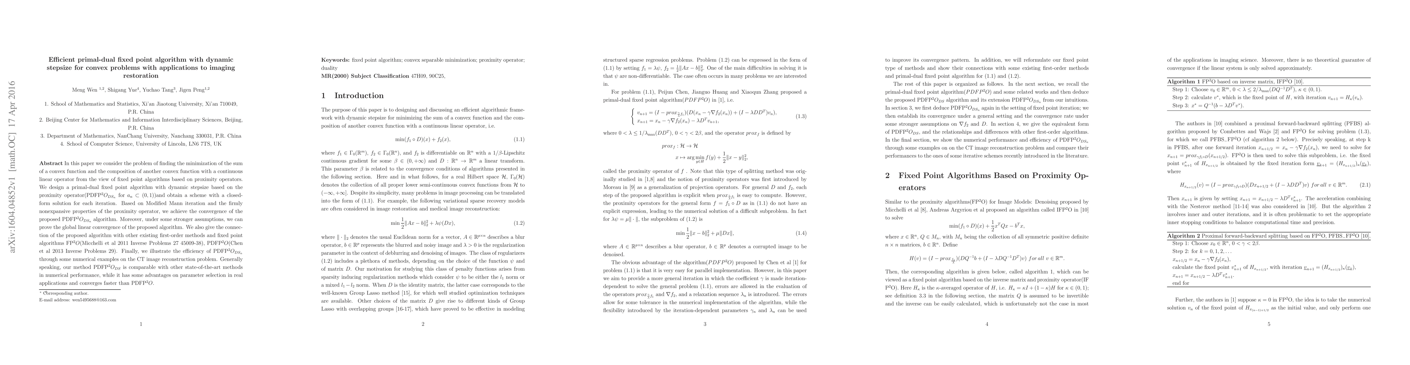 This paper proposes a primal-dual fixed point algorithm with dynamic stepsize for solving convex optimization problems, achieving a closed-form solution for each iteration. The algorithm leverages Modified Mann iteration and the properties of proximity operators to ensure convergence, with applications in imaging restoration.