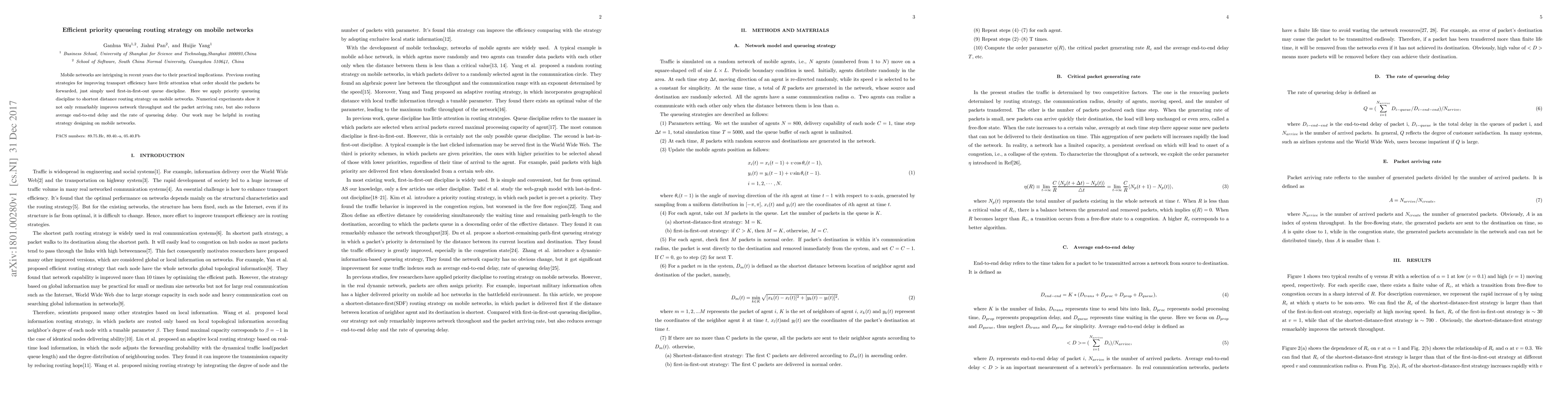 This paper proposes a priority queueing routing strategy for mobile networks, combining it with shortest distance routing to enhance throughput, reduce delays, and improve packet arrival rates. Experimental results demonstrate significant improvements over traditional first-in-first-out queueing methods.