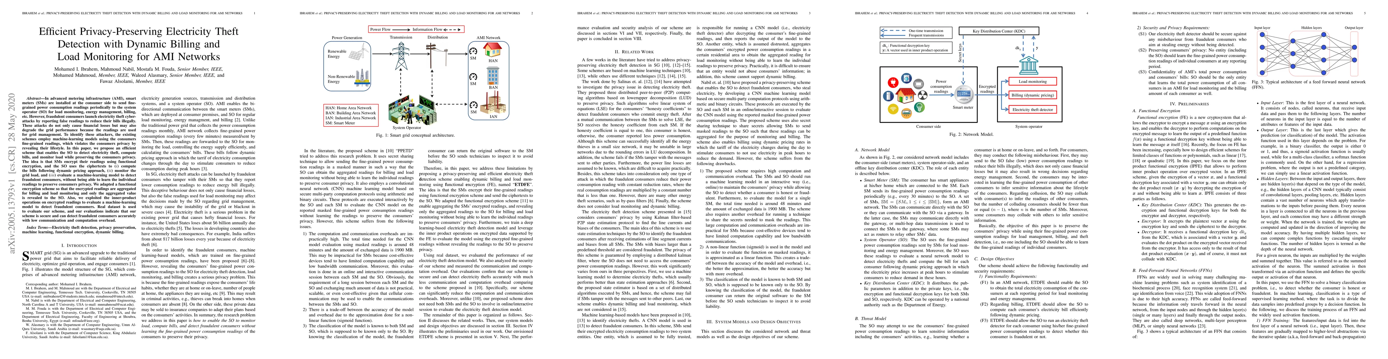 This paper proposes a privacy-preserving scheme for detecting electricity theft in AMI networks using functional encryption. The scheme allows the system operator to compute bills and monitor load without accessing individual consumer readings, thus preserving privacy while accurately identifying fraudulent consumers.