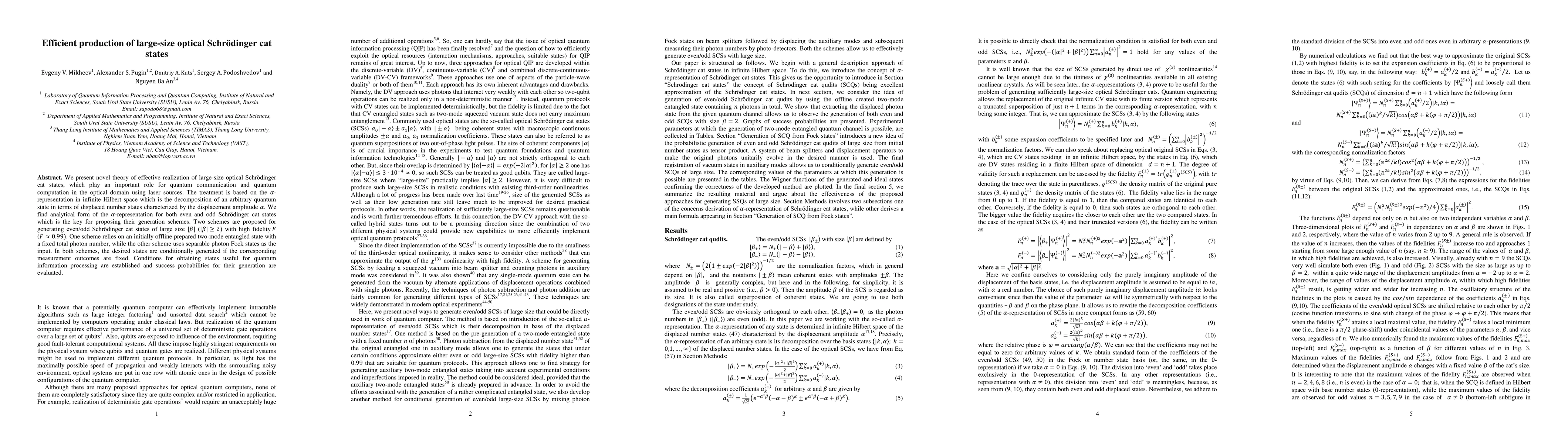 Summary: This paper introduces a theoretical framework for the efficient production of large-scale optical Schrödinger cat states, aiming to advance the practical realization of these complex quantum states in optical systems.