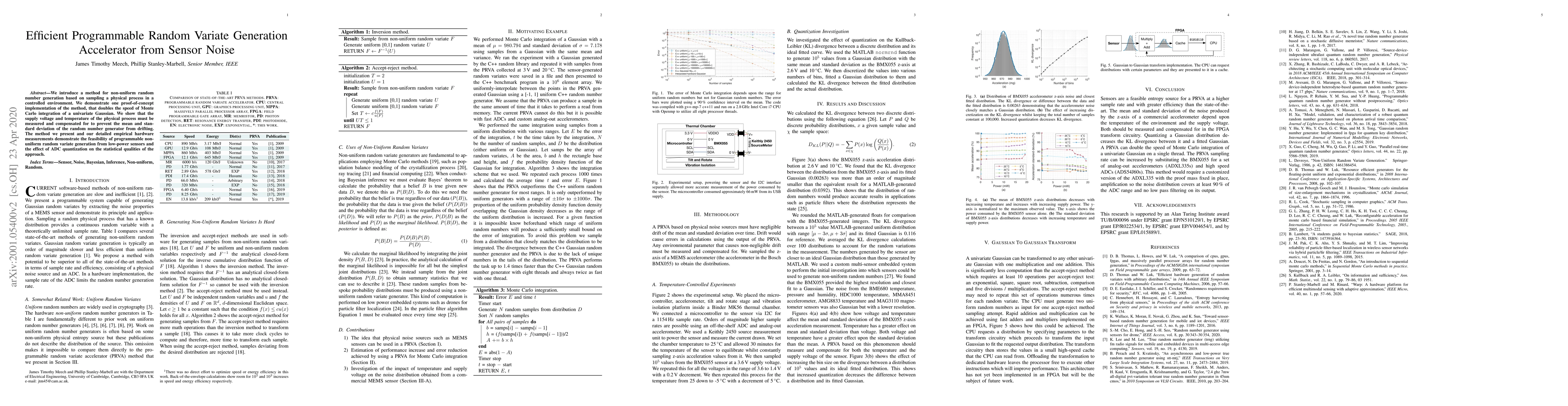 This paper presents a novel method for generating non-uniform random variates by sampling sensor noise in a controlled environment, significantly improving the efficiency of Monte Carlo integration. The proposed method reduces error by 1068 times and doubles simulation speed, emphasizing the need for precise control of supply voltage and temperature to maintain generator accuracy.