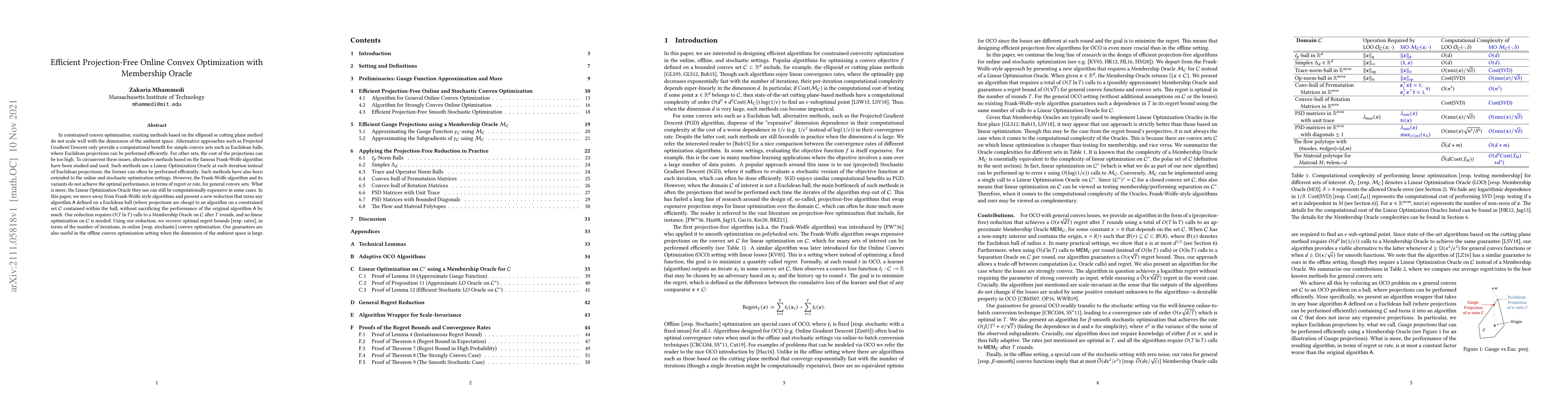 This paper introduces a novel reduction technique to efficiently solve constrained convex optimization problems without relying on computationally expensive projections. It leverages a Membership Oracle to achieve optimal regret bounds in online convex optimization, bypassing the limitations of traditional Frank-Wolfe algorithms and achieving performance comparable to methods designed for Euclidean spaces.