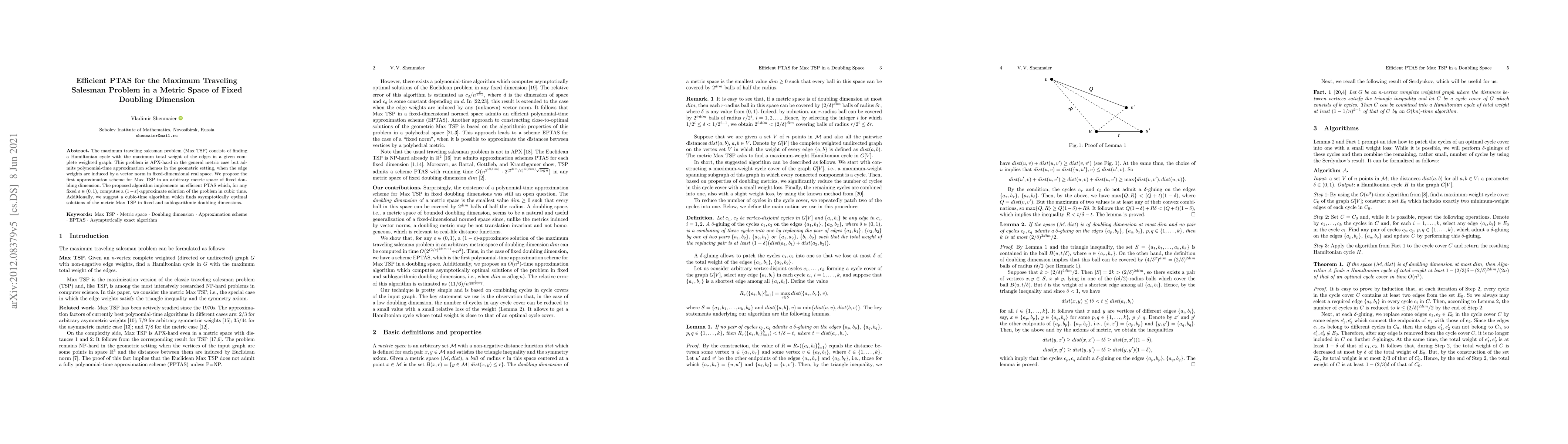 This paper presents the first efficient polynomial-time approximation scheme (PTAS) for the maximum traveling salesman problem (Max TSP) in metric spaces with fixed doubling dimension, achieving a $(1-\varepsilon)$-approximation in cubic time. It also proposes a cubic-time algorithm for finding asymptotically optimal solutions in spaces with fixed and sublogarithmic doubling dimensions.