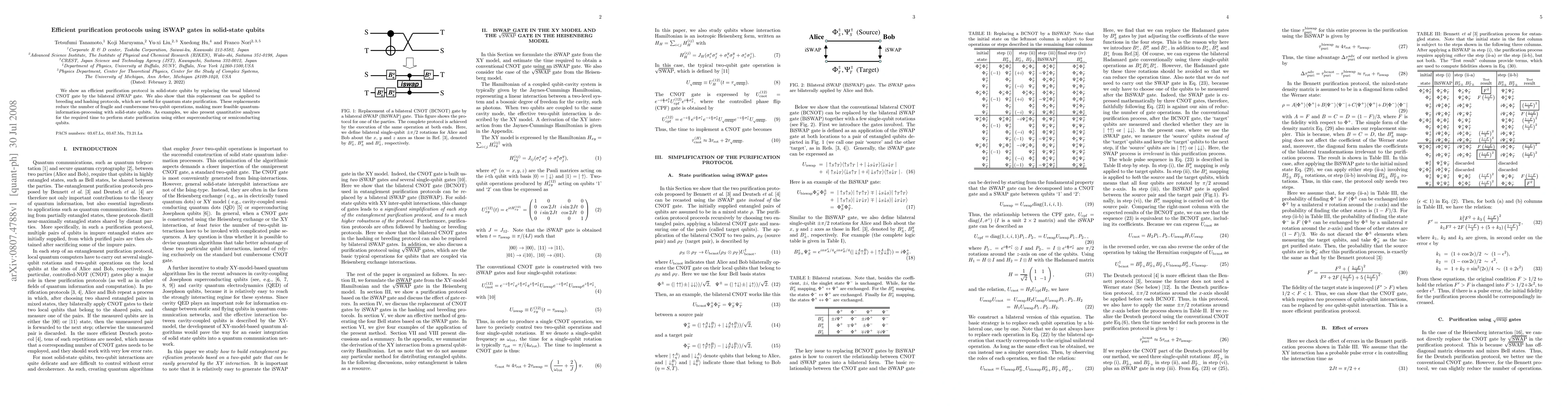 This paper proposes an efficient purification protocol for solid-state qubits by substituting the traditional CNOT gate with the iSWAP gate, which simplifies quantum state purification and reduces the complexity of two-qubit operations. The method is shown to be applicable to breeding and hashing protocols, enhancing the feasibility of quantum-information processing.