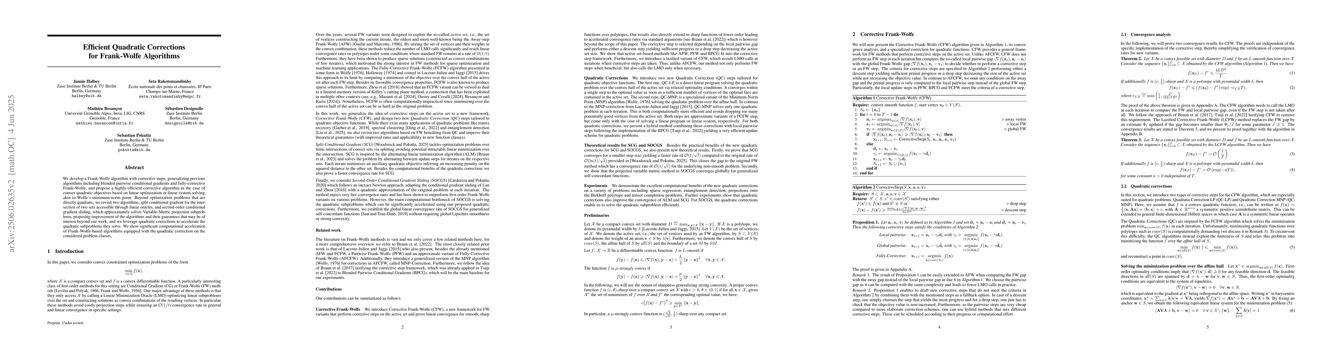 This research paper presents an efficient quadratic correction method for Frank-Wolfe algorithms, improving computational acceleration on convex quadratic objectives.