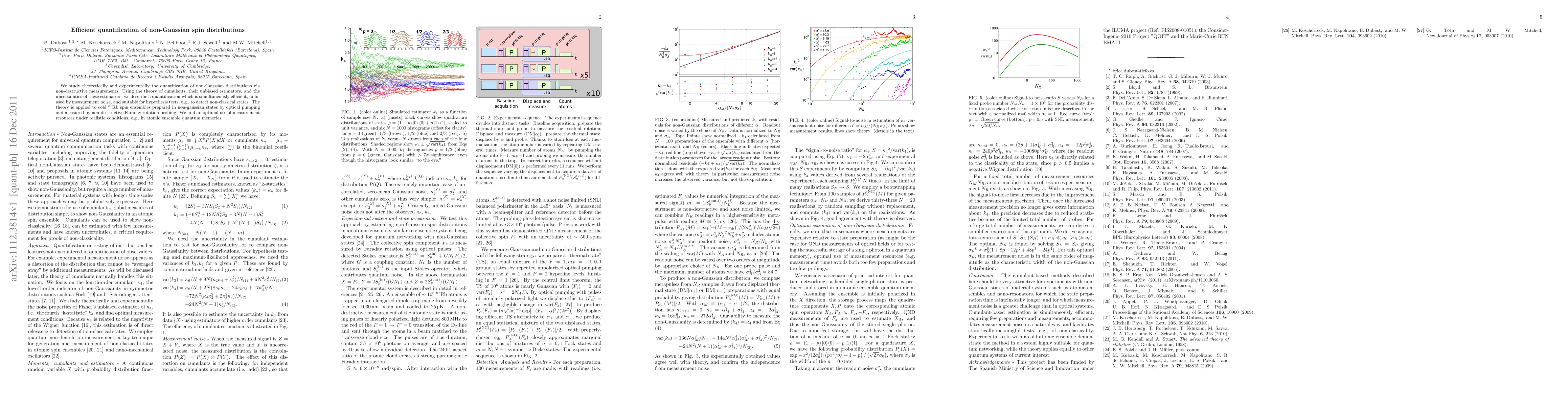 This paper presents a theoretical and experimental method for efficiently quantifying non-Gaussian spin distributions using cumulants and non-destructive measurements. The approach is validated with cold $^{87}$Rb spin ensembles, demonstrating its effectiveness in detecting non-classical states and optimizing measurement resources for quantum memory applications.