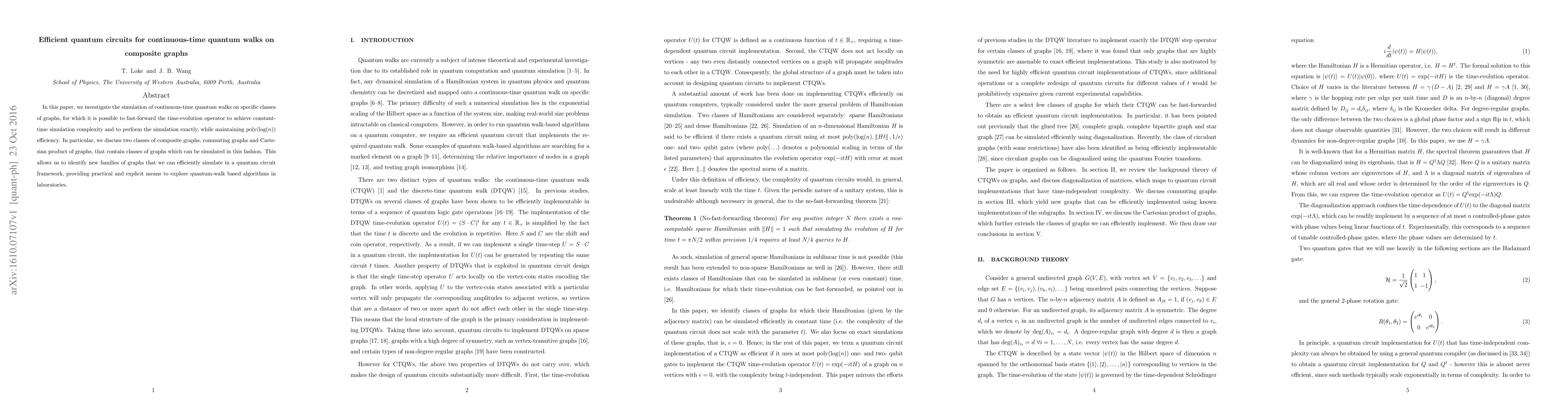 In this paper, we investigate the simulation of continuous-time quantum walks on specific classes of graphs, for which it is possible to fast-forward the time-evolution operator to achieve constant-time simulation complexity and to perform the simulation exactly, while maintaining $\mbox{poly}(\mbox{log}(n))$ efficiency. In particular, we discuss two classes of composite graphs, commuting graphs and Cartesian product of graphs, that contain classes of graphs which can be simulated in this fashion. This allows us to identify new families of graphs that we can efficiently simulate in a quantum circuit framework, providing practical and explicit means to explore quantum-walk based algorithms in laboratories.