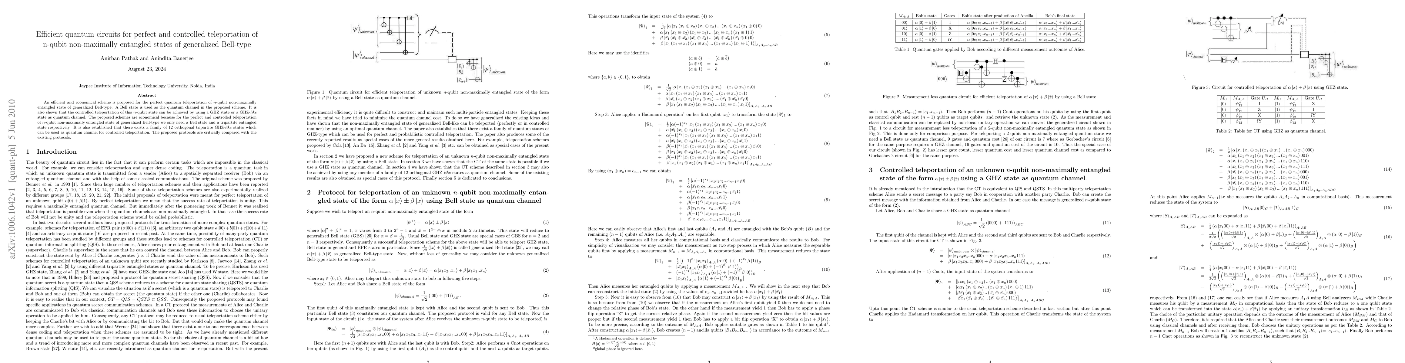 The paper proposes efficient quantum circuits for perfect and controlled teleportation of n-qubit non-maximally entangled generalized Bell-type states, using a Bell state and a GHZ state respectively, highlighting the protocols' economy and the existence of 12 orthogonal GHZ-like states for controlled teleportation. Comparisons with existing protocols are provided.