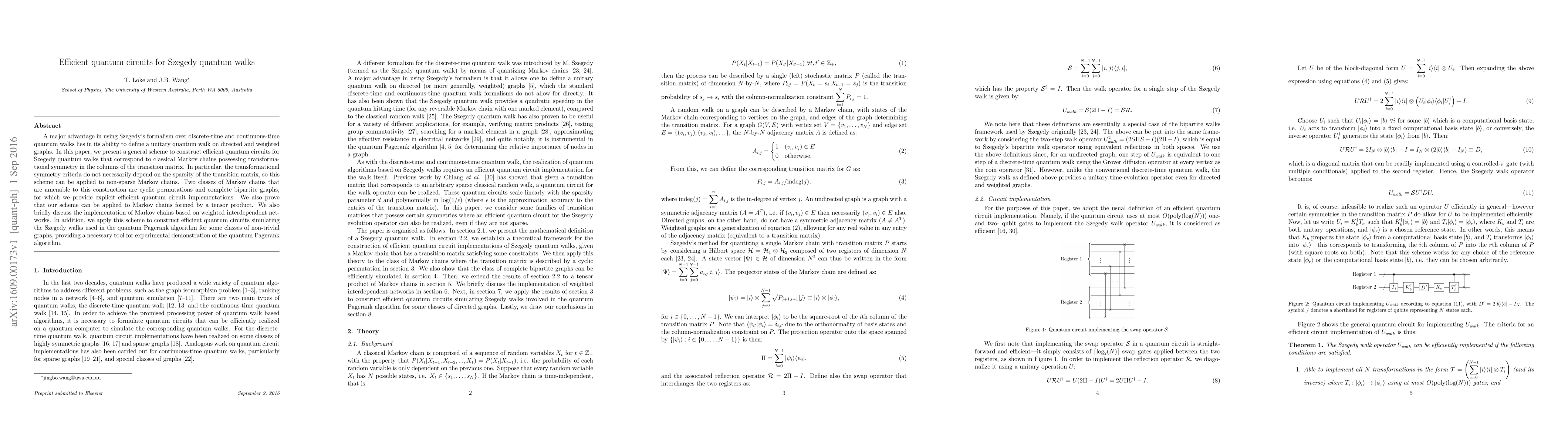 The paper introduces a general method for constructing efficient quantum circuits for Szegedy quantum walks, applicable to both sparse and non-sparse Markov chains with transformational symmetry in their columns.