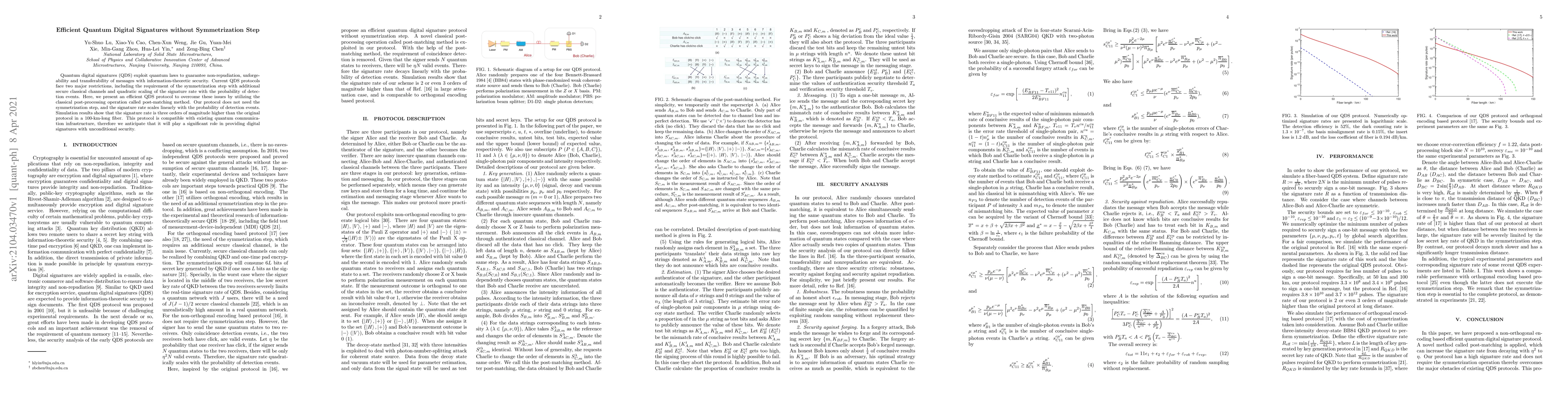 This paper proposes an efficient quantum digital signature (QDS) protocol that eliminates the need for a symmetrization step and achieves linear scaling of the signature rate with detection probability. The new post-matching method significantly enhances the signature rate, making it three orders of magnitude higher than previous protocols over 100 km.