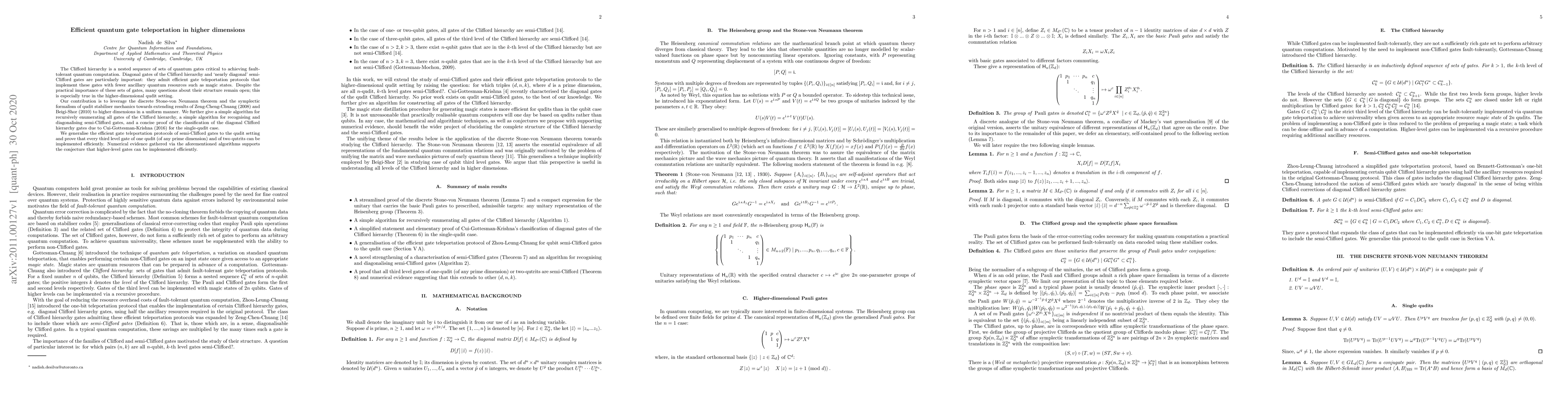 This paper extends efficient gate teleportation protocols for diagonal and semi-Clifford gates to higher-dimensional qudits, leveraging the symplectic formalism and discrete Stone-von Neumann theorem. It provides algorithms for enumerating Clifford hierarchy gates and recognizing semi-Clifford gates, and supports the conjecture that higher-level gates can be implemented efficiently.