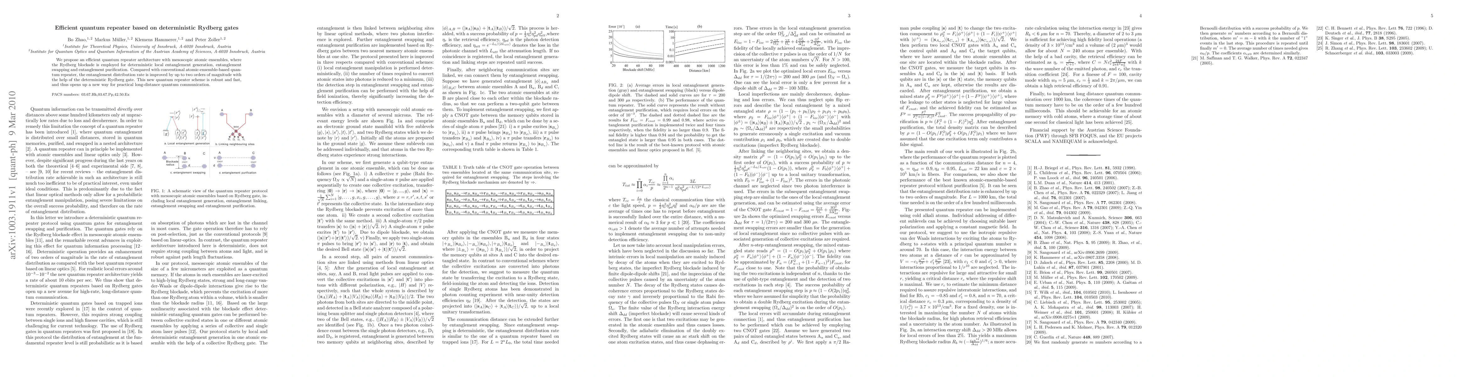 This paper proposes an advanced quantum repeater architecture utilizing mesoscopic atomic ensembles and Rydberg blockade for deterministic entanglement generation and purification, significantly enhancing the entanglement distribution rate by two orders of magnitude compared to conventional methods. The new design is both robust and fast, paving the way for practical long-distance quantum communication.