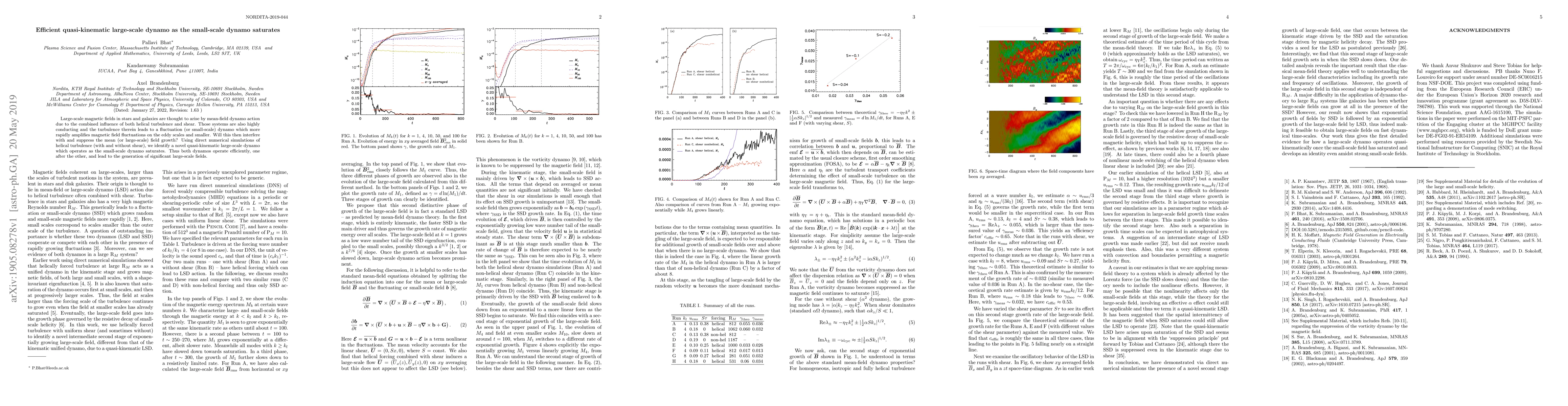 This study finds that as the small-scale dynamo saturates, a quasi-kinematic large-scale dynamo emerges, efficiently generating significant large-scale magnetic fields in stars and galaxies by utilizing helical turbulence and shear, thereby maintaining continuous magnetic field amplification.