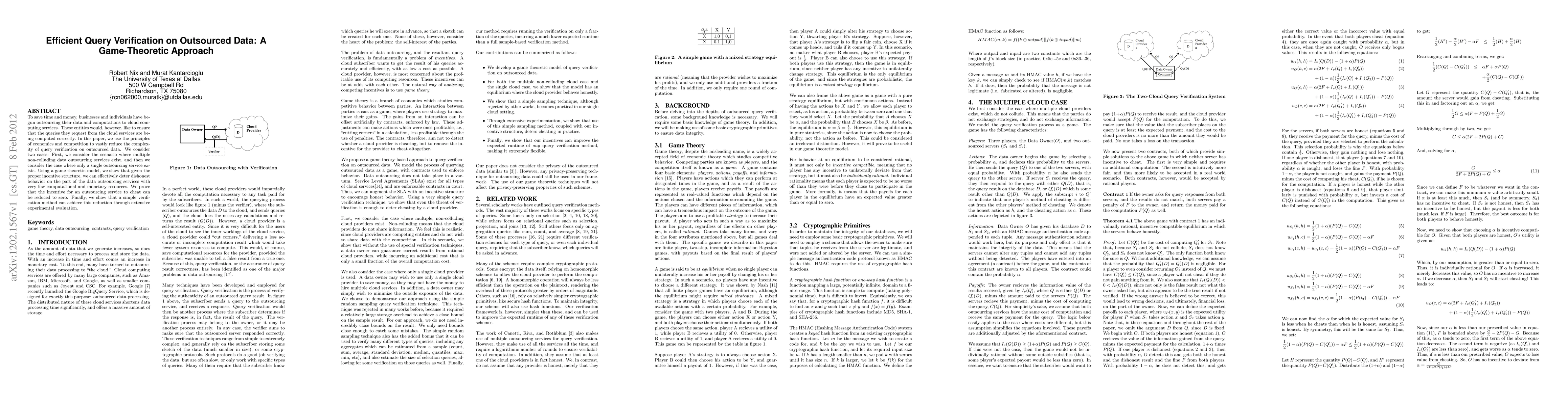 To save time and money, businesses and individuals have begun outsourcing their data and computations to cloud computing services. These entities would, however, like to ensure that the queries they request from the cloud services are being computed correctly. In this paper, we use the principles of economics and competition to vastly reduce the complexity of query verification on outsourced data. We consider two cases: First, we consider the scenario where multiple non-colluding data outsourcing services exist, and then we consider the case where only a single outsourcing service exists. Using a game theoretic model, we show that given the proper incentive structure, we can effectively deter dishonest behavior on the part of the data outsourcing services with very few computational and monetary resources. We prove that the incentive for an outsourcing service to cheat can be reduced to zero. Finally, we show that a simple verification method can achieve this reduction through extensive experimental evaluation.