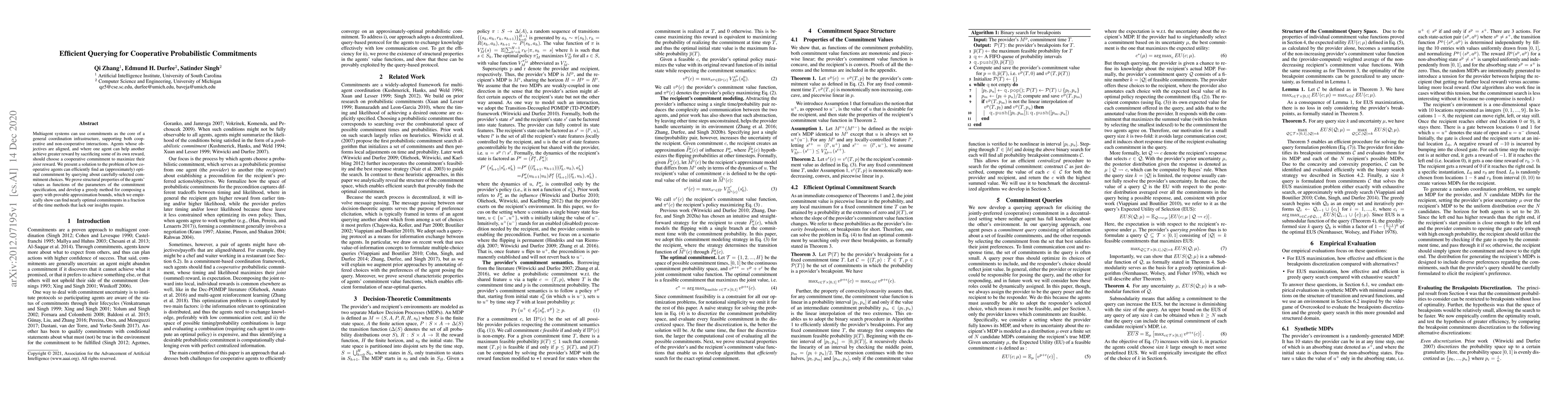 This research introduces an efficient method for cooperative agents in multiagent systems to find optimal commitments by querying specific choices. It proves structural properties of agents' values and presents a greedy approach with approximation bounds, demonstrated to find near-optimal commitments quickly in empirical tests.
