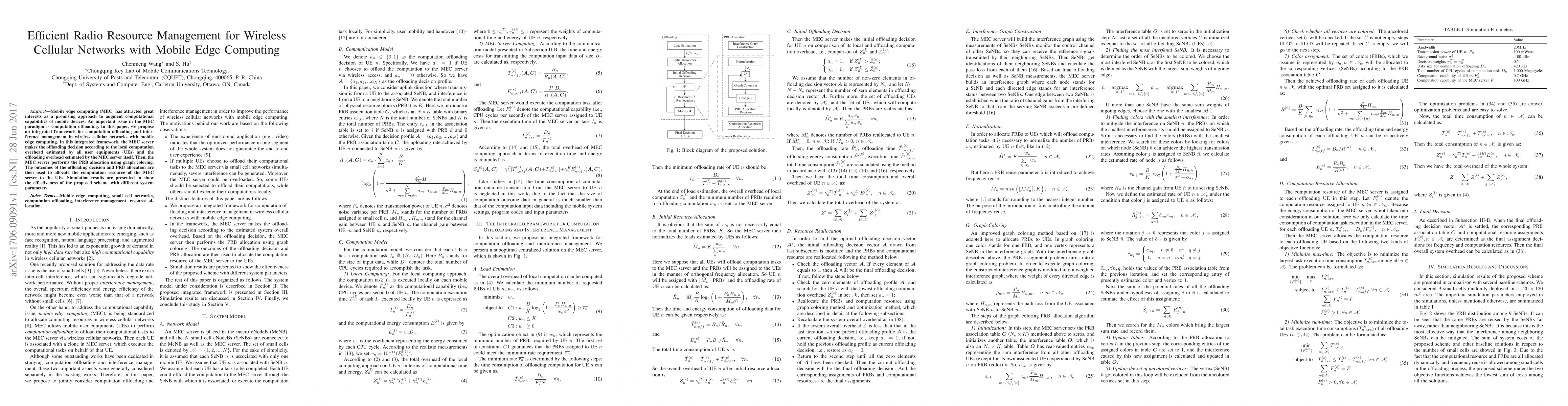 This paper proposes an integrated framework for computation offloading and interference management in wireless cellular networks utilizing mobile edge computing (MEC). The MEC server decides offloading based on local and offloading overheads, followed by PRB allocation via graph coloring, and allocates computation resources accordingly, demonstrating effectiveness through simulations.