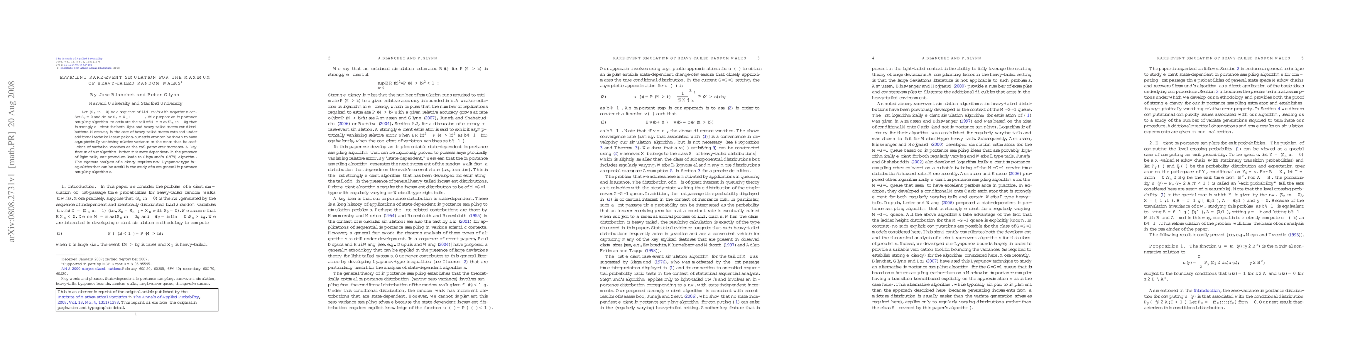 The paper presents an importance sampling algorithm for efficiently estimating the maximum of heavy-tailed random walks, which is shown to be strongly efficient across different tail distributions. The algorithm's relative variance asymptotically vanishes under certain conditions, and it reduces to Siegmund's algorithm for light-tailed increments.