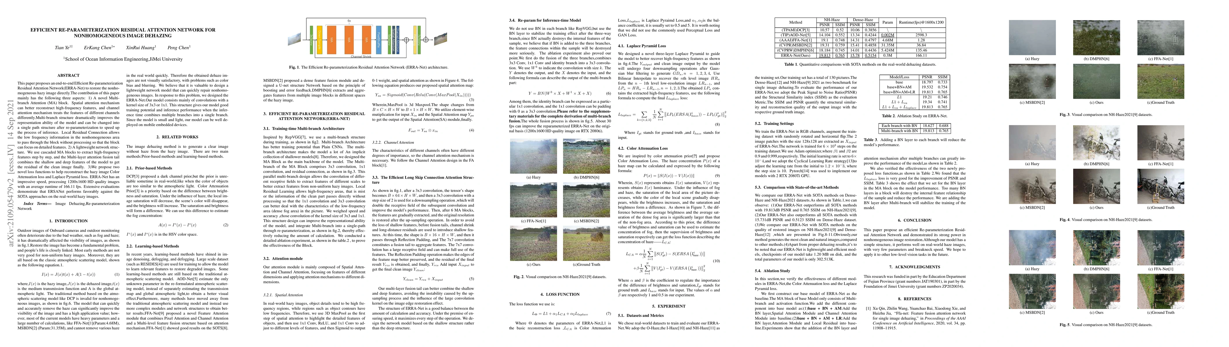 This paper introduces an Efficient Re-parameterization Residual Attention Network (ERRA-Net) for nonhomogeneous image dehazing, featuring a Multi-branch Attention block, a lightweight network structure, and novel loss functions for superior performance and speed. ERRA-Net achieves 166.11 fps for HD images, outperforming state-of-the-art methods.