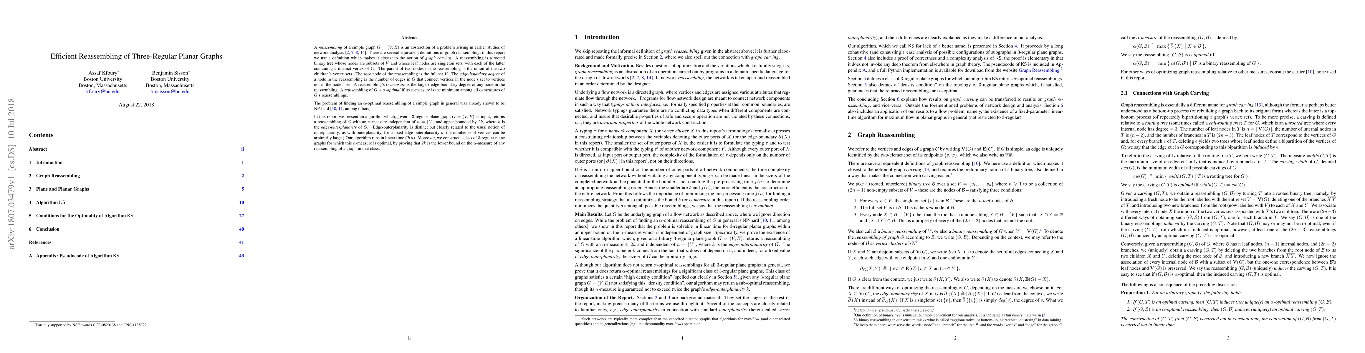 A new algorithm efficiently reassembles 3-regular plane graphs into optimal configurations with an alpha-measure upper-bounded by 2k, where k is the graph's edge-outerplanarity.