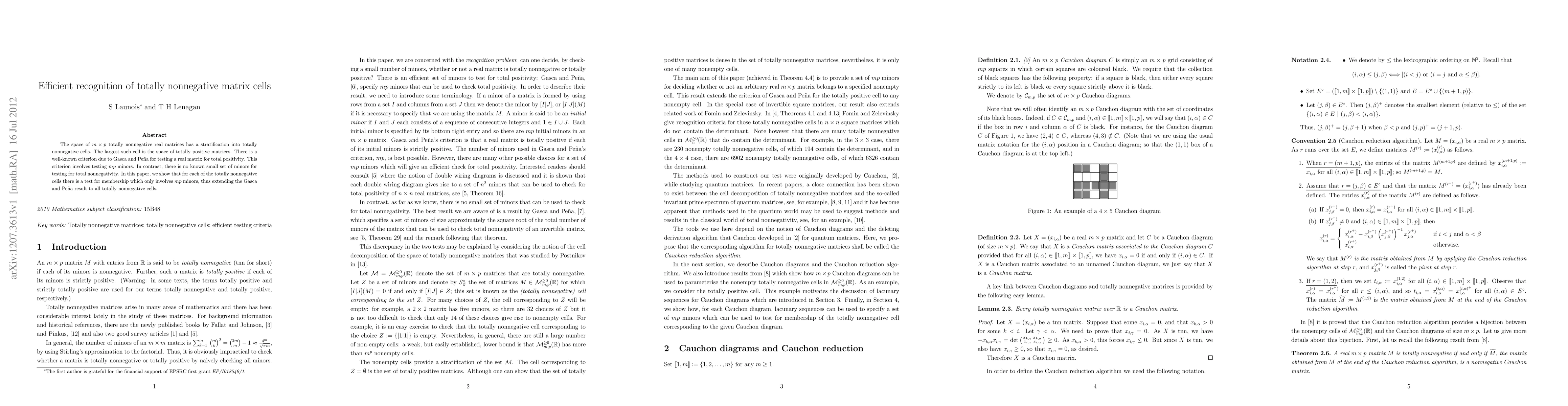This paper presents a new criterion for recognizing membership in totally nonnegative matrix cells, involving only mp minors, thus extending the Gasca and Peña test for total positivity to all totally nonnegative cells. This provides a more efficient method for determining the total nonnegativity of matrices.