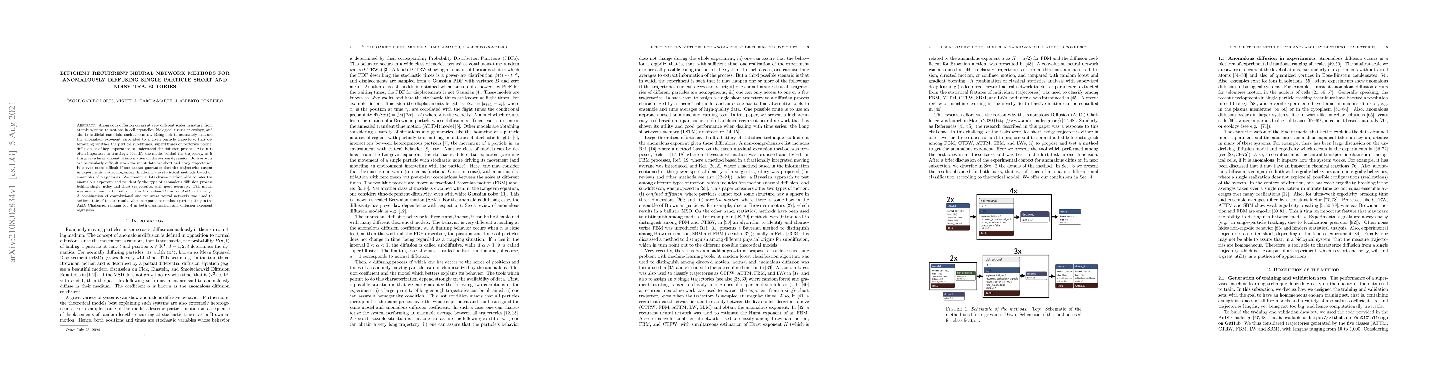 This paper presents a data-driven method using convolutional and recurrent neural networks to accurately infer the anomalous exponent and identify the type of anomalous diffusion in short and noisy particle trajectories. The proposed model achieved top 4 rankings in both classification and diffusion exponent regression in the Anomalous Diffusion Challenge.