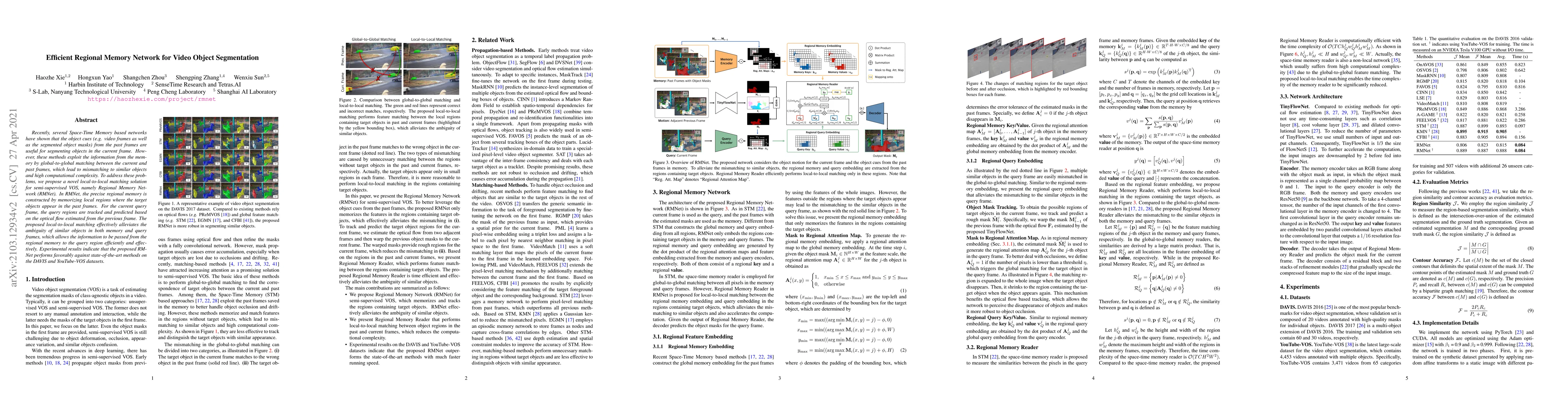 The paper introduces Regional Memory Network (RMNet) for video object segmentation, addressing the limitations of previous global-to-global memory matching methods. RMNet creates precise regional memory by tracking local object regions from past frames, and uses optical flow for current frame tracking. This local-to-local matching improves efficiency and reduces ambiguity, outperforming existing methods on DAVIS and YouTube-VOS datasets.