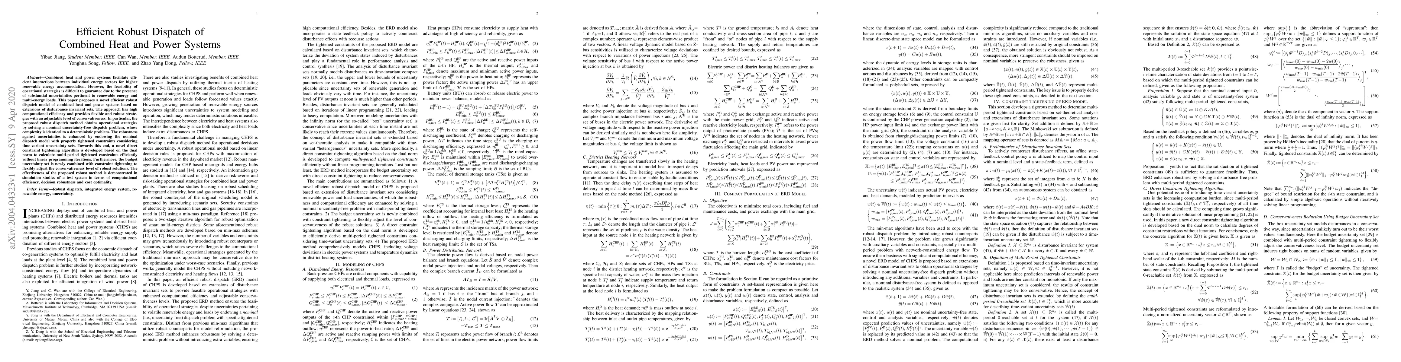 This paper proposes an efficient robust dispatch model for combined heat and power systems, addressing uncertainties in renewable energy and multi-energy loads. The method enhances robustness through tightened constraints and a novel direct constraint tightening algorithm, demonstrating computational efficiency and robust decision-making in simulations.