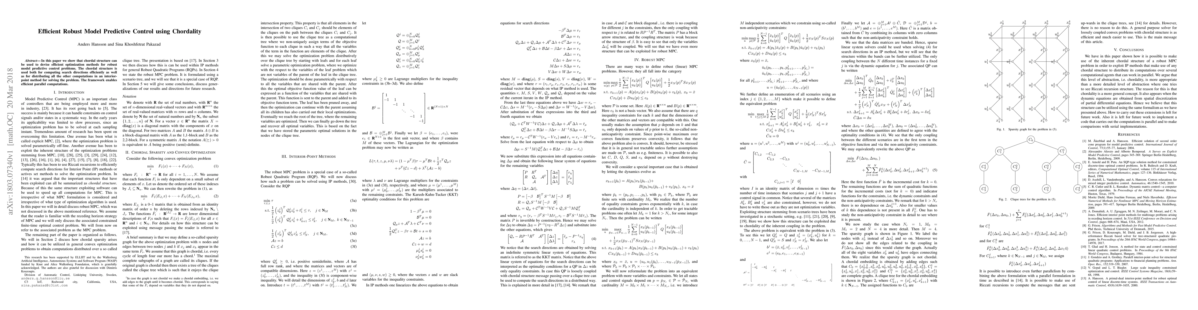 This paper introduces a new method for efficient robust model predictive control using chordal structure, enabling fast parallel computations and solving complex optimization problems.