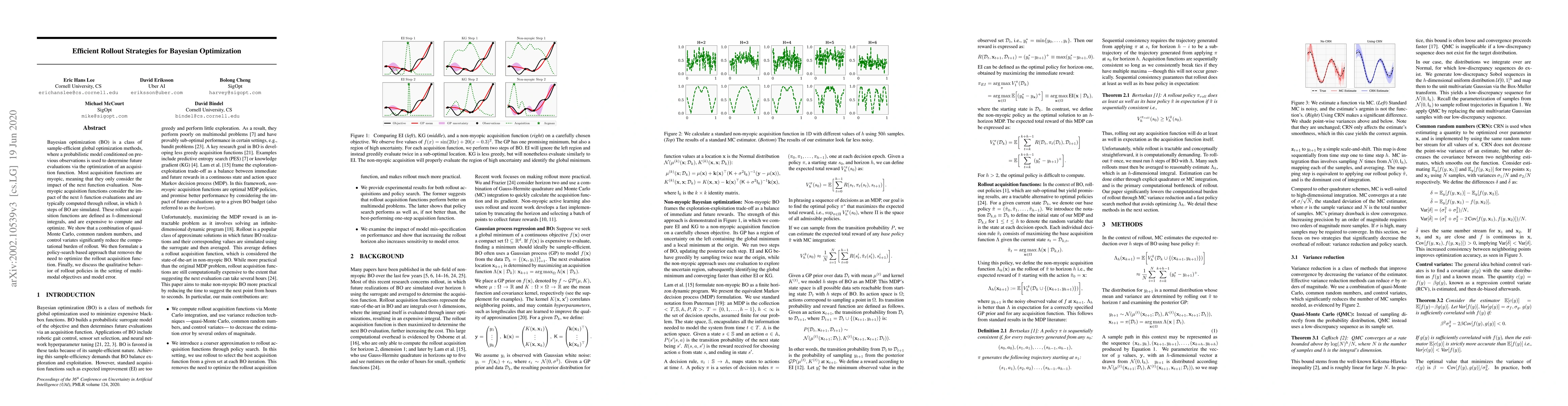 This paper proposes efficient strategies for implementing rollout in Bayesian optimization, reducing computational costs through quasi-Monte Carlo methods, common random numbers, and control variates. It also introduces a policy-search approach that eliminates the need to optimize the rollout acquisition function.