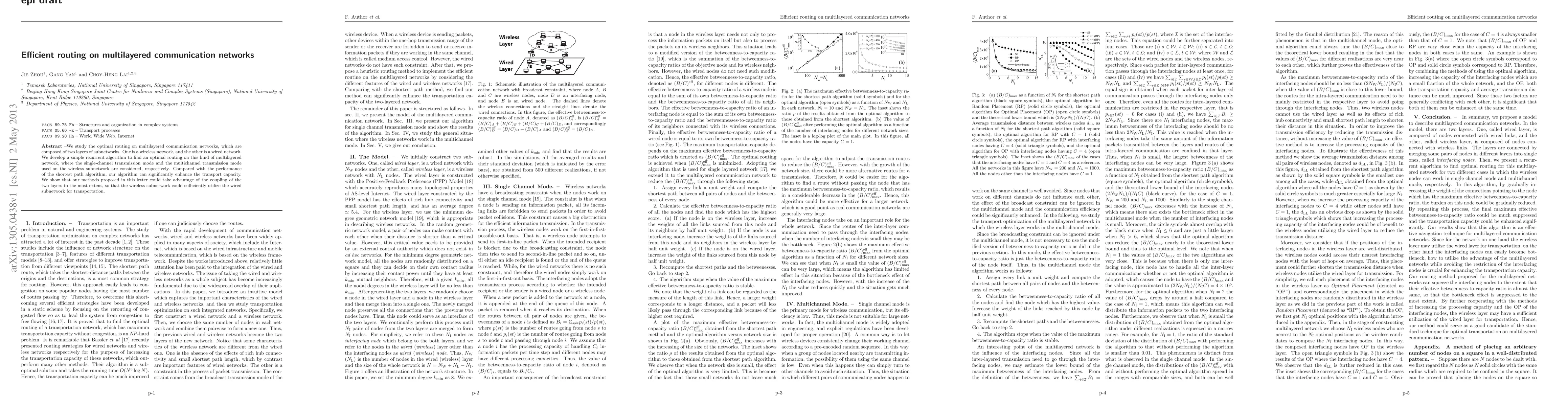 This research presents an efficient routing algorithm for multilayered networks, integrating wireless and wired subnetworks. The proposed recurrent algorithm outperforms shortest path methods by enhancing transport capacity, effectively utilizing the wireless subnetwork with the wired one.