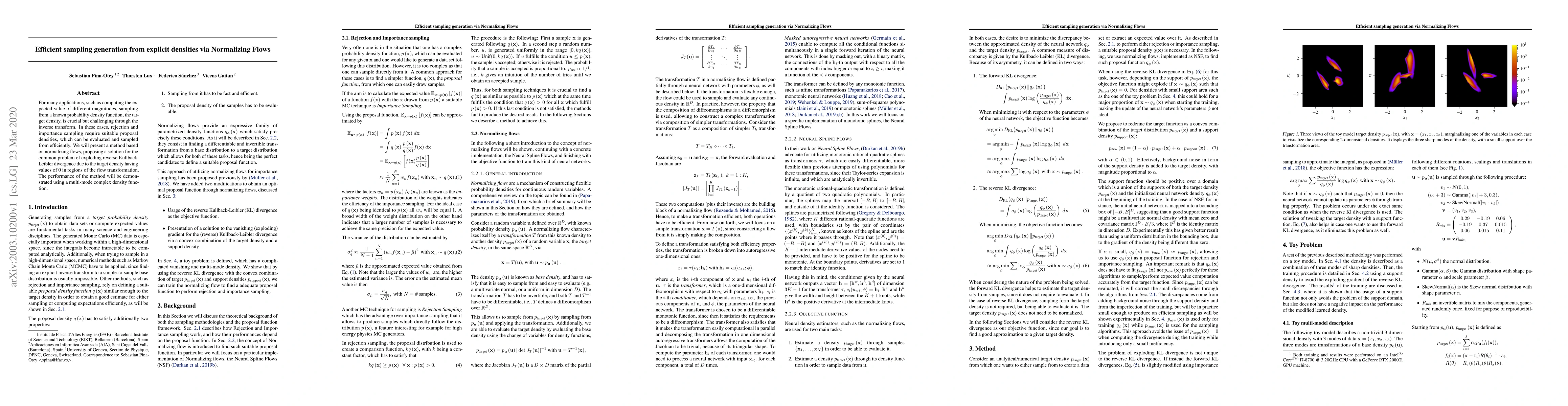 This research introduces a method using Normalizing Flows to efficiently sample from known probability density functions, addressing the challenge of exploding reverse Kullback-Leibler divergence. It demonstrates the effectiveness with a complex, multi-mode density function.