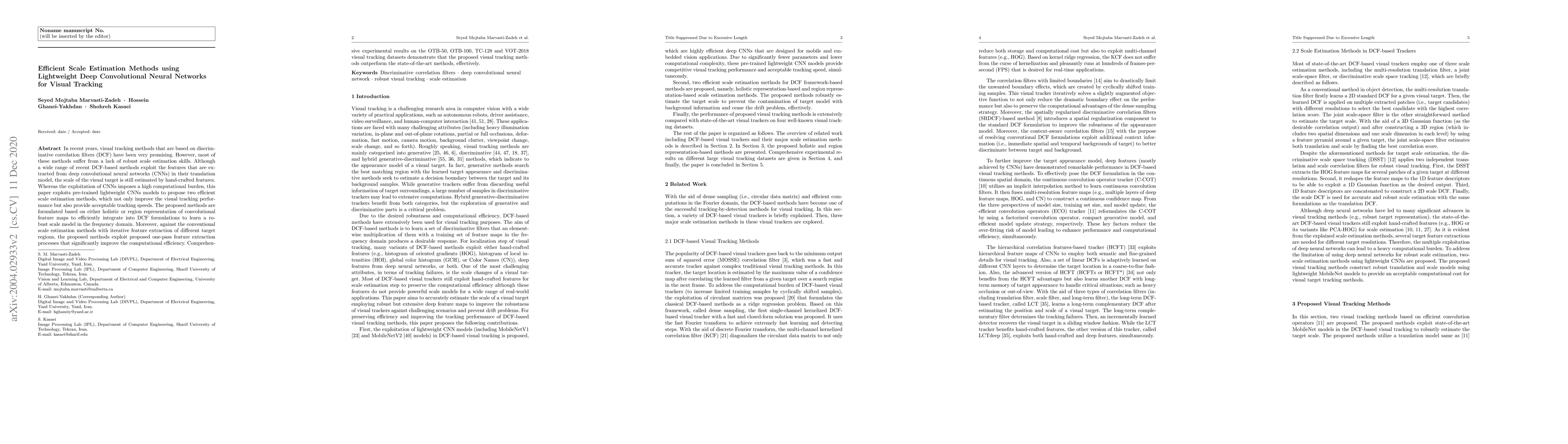 This paper proposes efficient scale estimation methods using lightweight deep convolutional neural networks to enhance visual tracking performance. The methods integrate convolutional features into discriminative correlation filters, leveraging one-pass feature extraction to improve computational efficiency and outperform state-of-the-art trackers on multiple datasets.