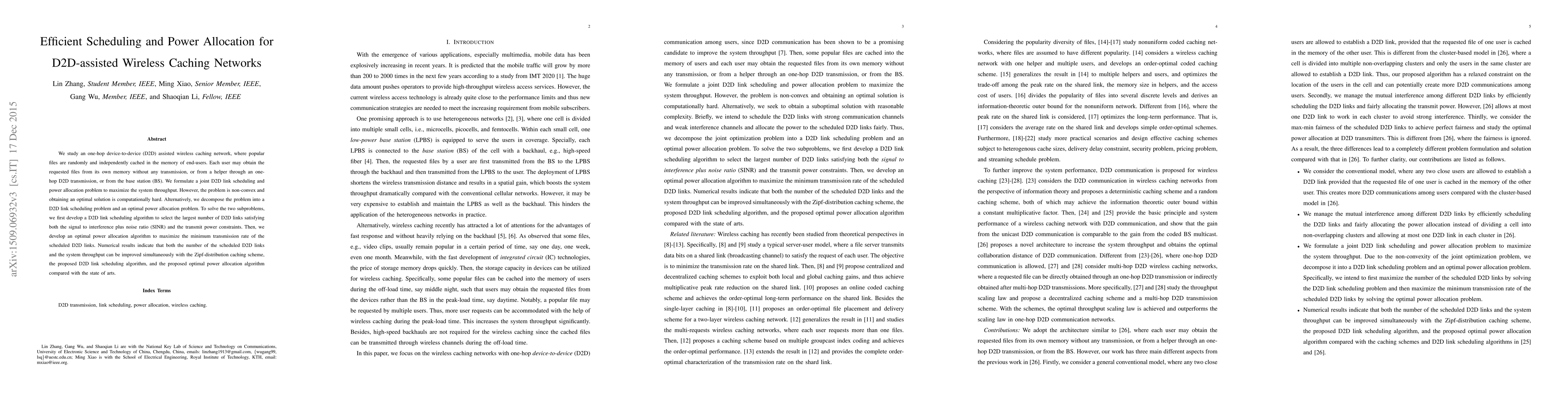 This paper investigates an efficient scheduling and power allocation strategy for D2D-assisted wireless caching networks, aiming to maximize system throughput. It decomposes the non-convex joint problem into D2D link scheduling and power allocation, achieving improvements over existing methods through numerical results.