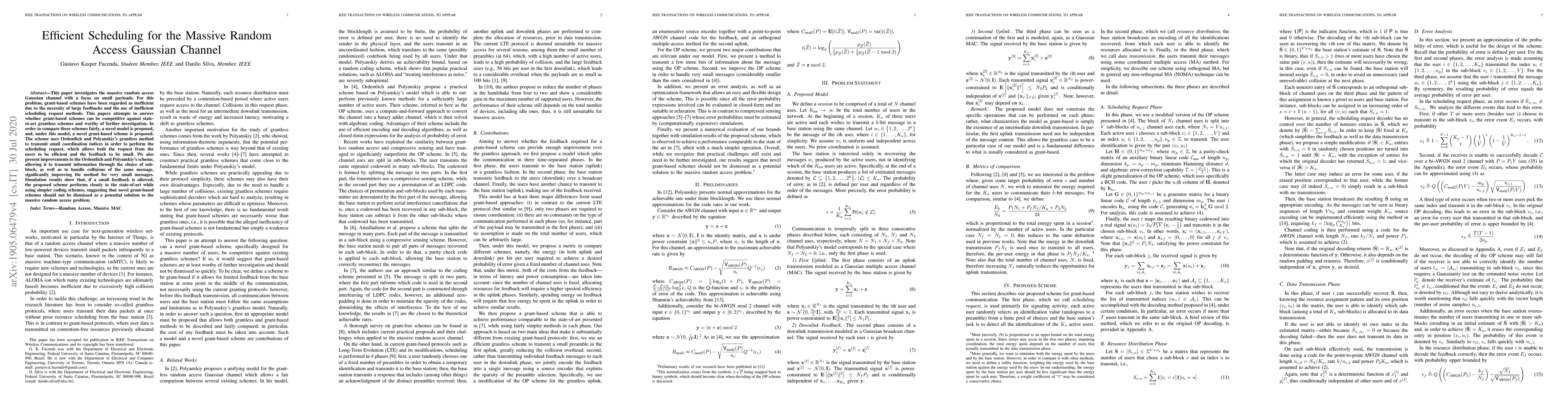 Researchers developed a new grant-based scheme for massive random access Gaussian channels, showing it can perform similarly to state-of-the-art schemes with simpler coding methods, offering a potential solution to the massive random access problem.