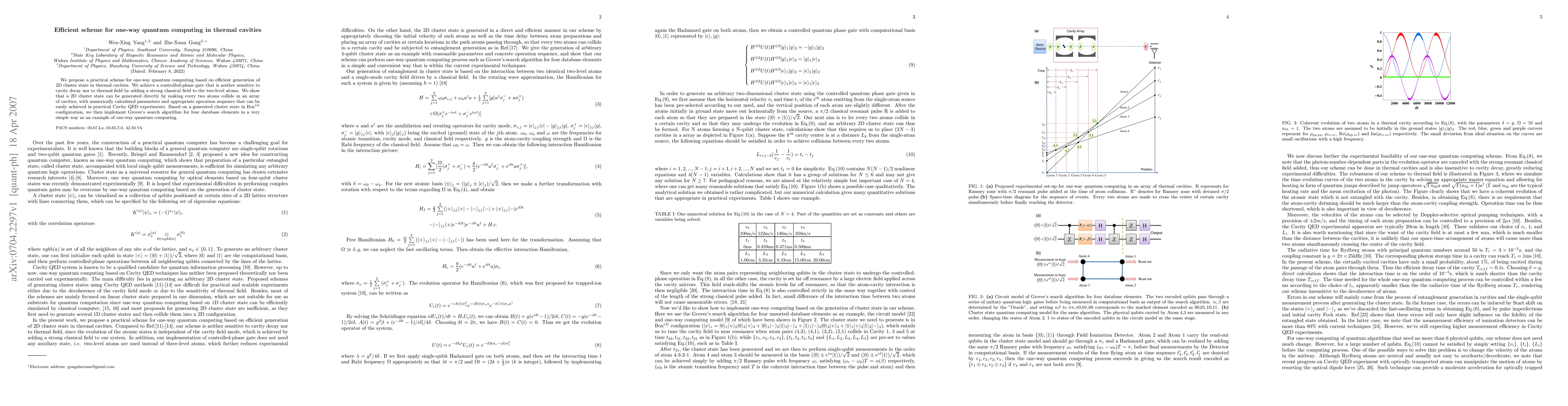 This paper proposes a practical scheme for one-way quantum computing utilizing 2D cluster states generated in thermal cavities, employing controlled-phase gates that remain stable against decay and thermal fluctuations. The method involves atomic collisions in cavity arrays and demonstrates Grover's search algorithm using a Box$^{(4)}$ configuration as an example.