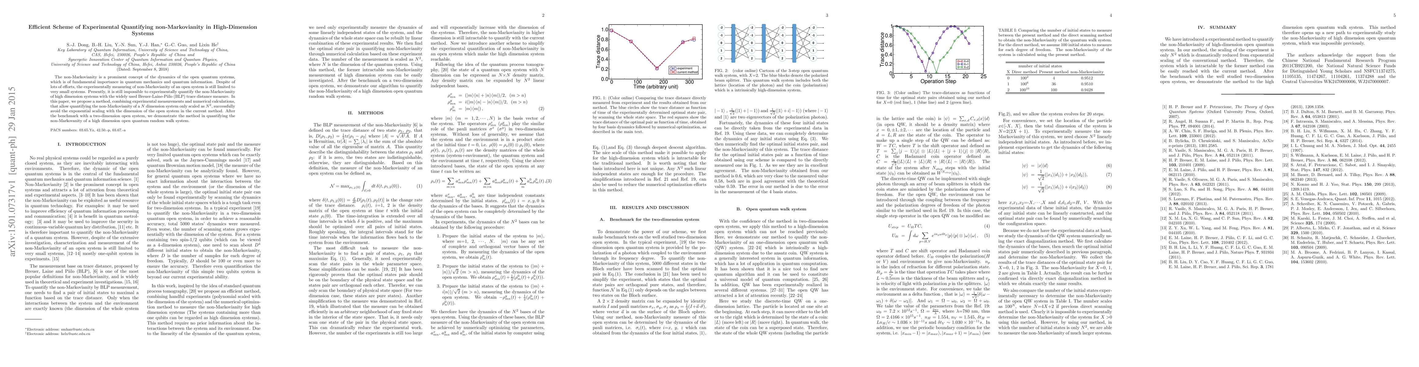 This paper proposes a novel method to quantify non-Markovianity in high-dimension quantum systems, overcoming the exponential scaling issue with dimension using a $N^2$ scaling approach. The method combines experimental measurements and numerical calculations, successfully demonstrated on a high-dimension quantum random walk system.