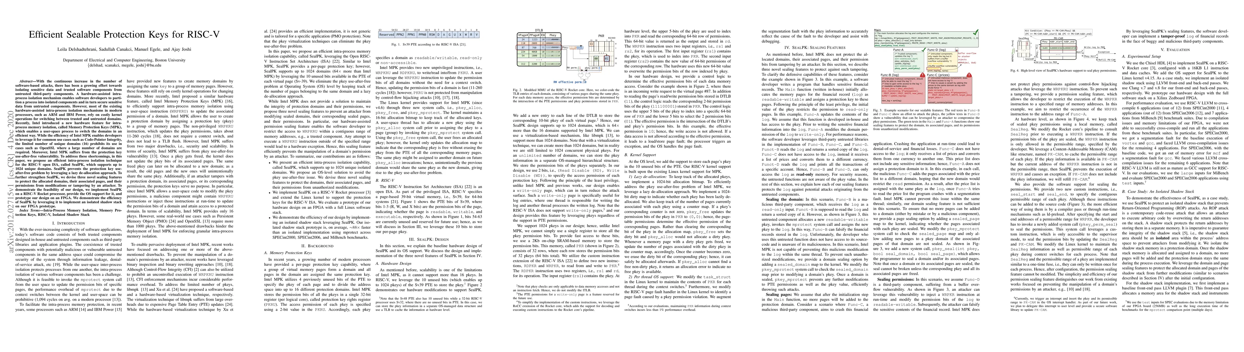 This paper proposes SealPK, an efficient intra-process isolation technique for RISC-V, supporting up to 1024 unique domains to address limitations of existing mechanisms like Intel's MPK. SealPK prevents protection key vulnerabilities and includes novel sealing features to enhance security.